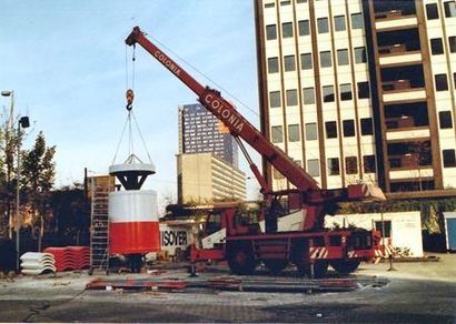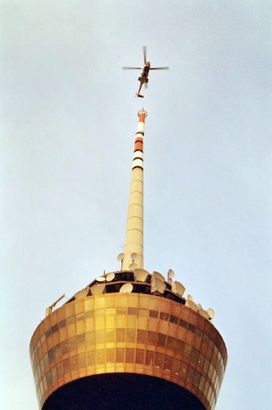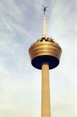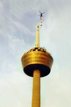Aufsetzen der Antenne (1991) damit hat der Colonius eine Höhe von knapp 266 Meter
